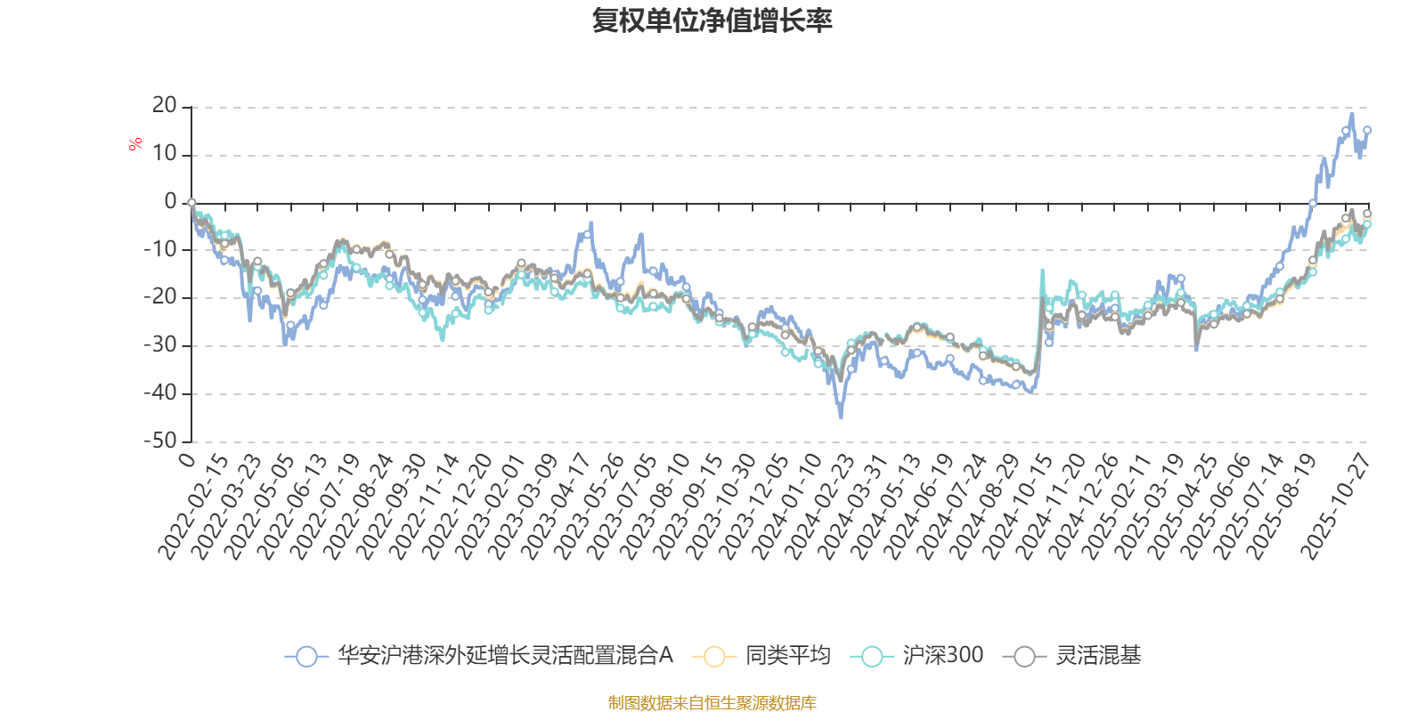 截至10月27日,华安沪港深外延增长灵活配置混合A近三个月复权单位净值增长率为24.98%,位于同类可比基金276/1287;近半年复权单位净值增长率为50.63%,位于同类可比基金158/1287;近一年复权单位净值增长率为53.63%,位于同类可比基金133/1287;近三年复权单位净值增长率为42.89%,位于同类可比基金179/1286。