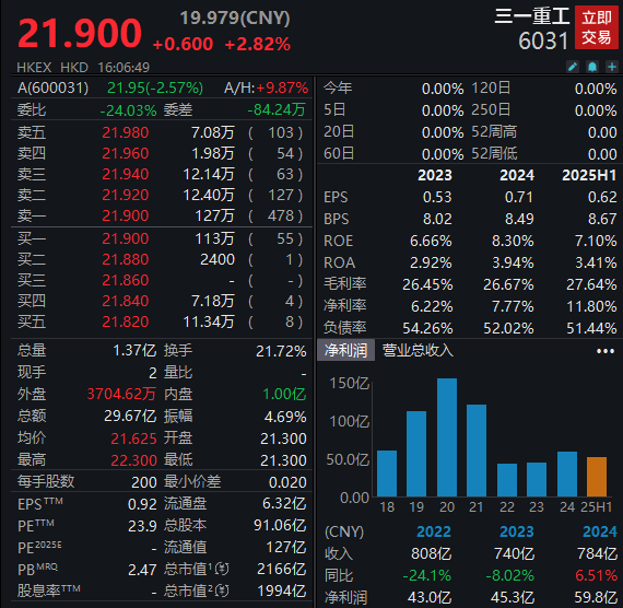据介绍,这是三一重工继2003年7月3日登陆上海证券交易所(600031.SH)后,在资本布局和全球化战略上迈出的关键一步,标志着公司成功构建“A+H”双平台上市格局。