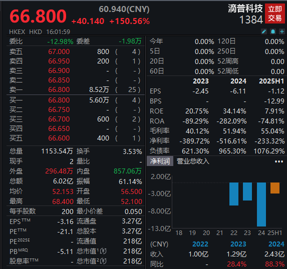 具体来看,滴普科技表现远超预期,暗盘涨幅94.67%,今日收盘涨幅达到150.56%。