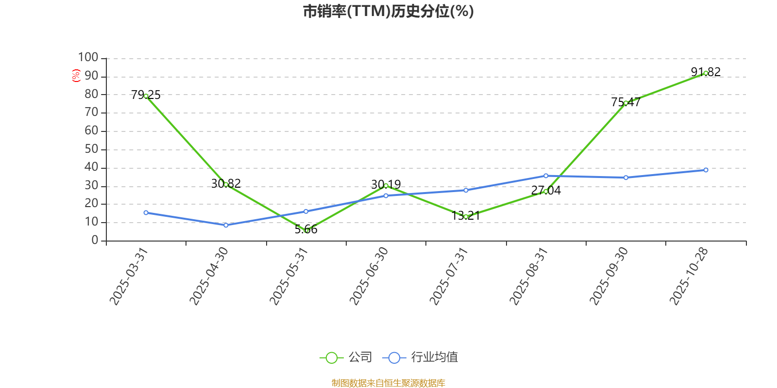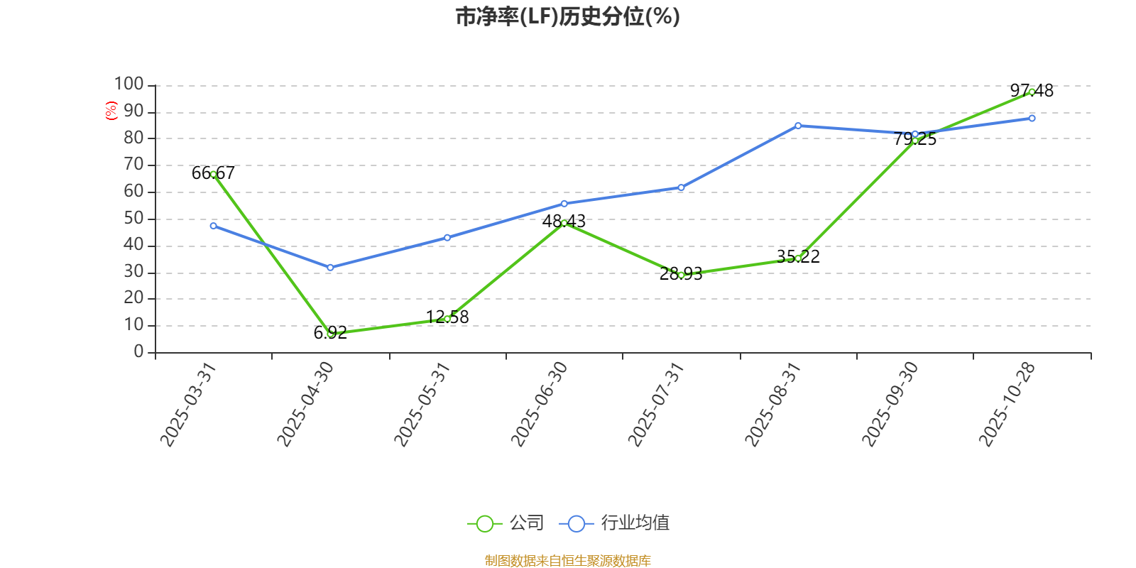 市盈率、市净率为负时,不显示当期分位数,会导致折线图中断。