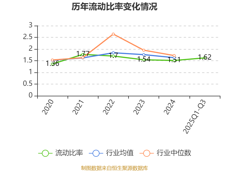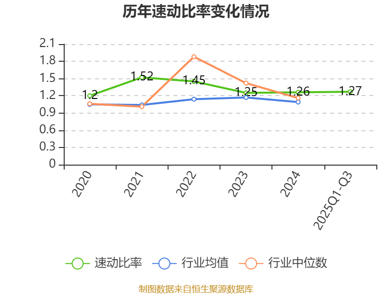 2025年前三季度,公司流动比率为1.62,速动比率为1.27。