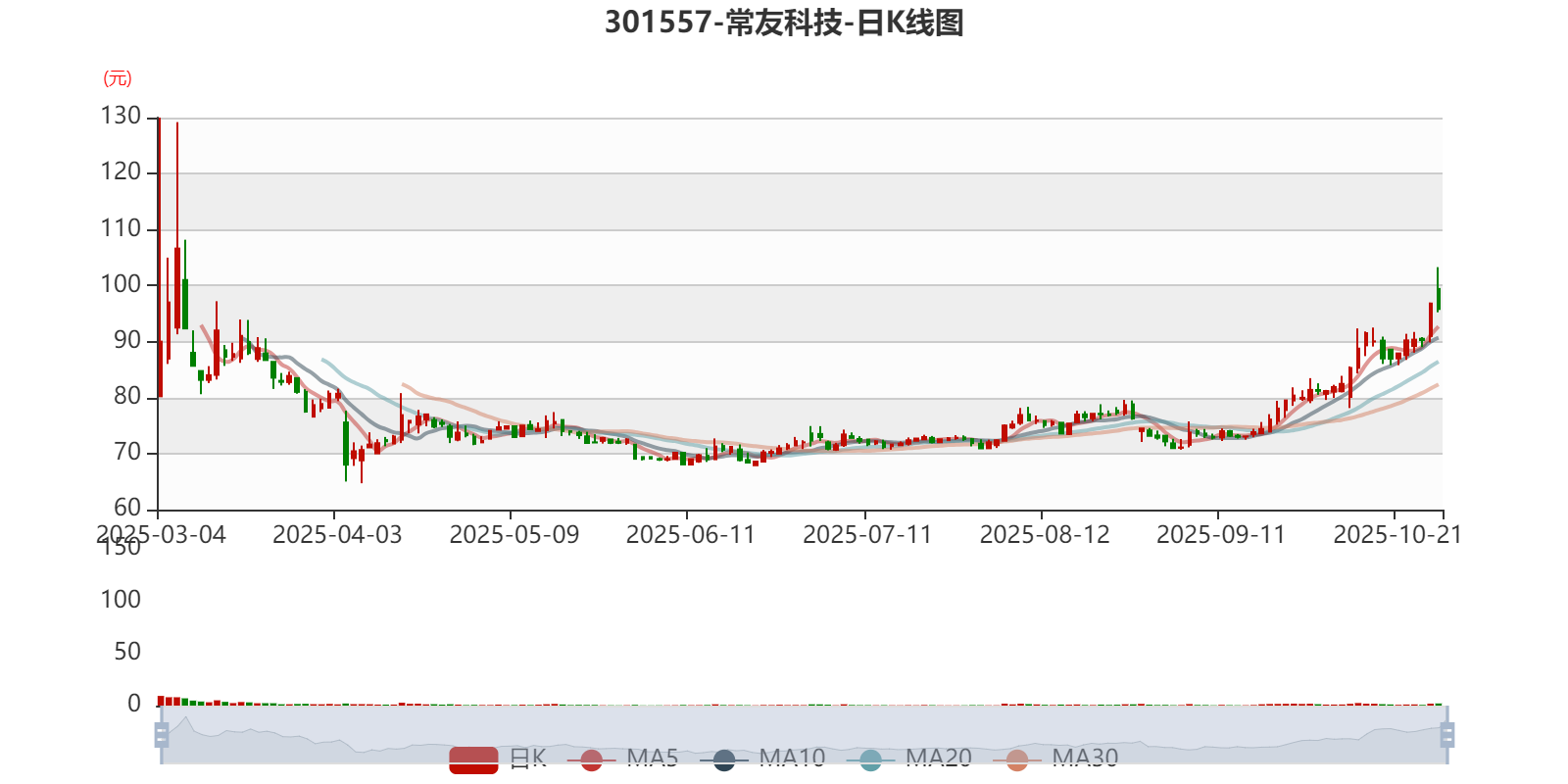 以10月28日收盘价计算,常友科技目前市盈率(TTM)约为46.64倍,市净率(LF)约4.2倍,市销率(TTM)约3.66倍。