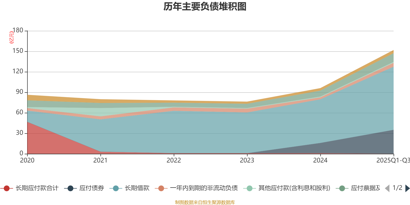 负债重大变化方面,截至2025年三季度末,公司长期借款较上年末增加44.76%,占公司总资产比重上升8.59个百分点;应付债券较上年末增加133.37%,占公司总资产比重上升6.59个百分点;应付票据及应付账款较上年末增加46.05%,占公司总资产比重上升1.21个百分点;一年内到期的非流动负债较上年末增加93.92%,占公司总资产比重上升0.89个百分点。