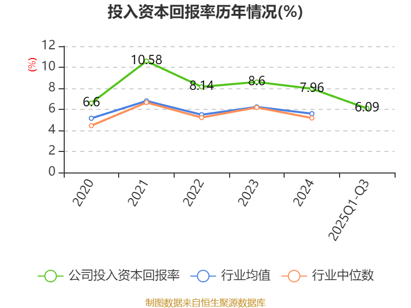 盈利能力方面, 2025年前三季度公司加权平均净资产收益率为10.78%,同比上升1.99个百分点。公司2025年前三季度投入资本回报率为6.09%,较上年同期下降0.06个百分点。