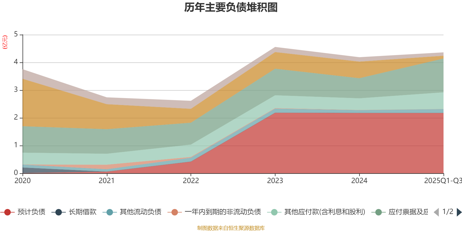 负债重大变化方面,截至2025年三季度末,公司短期借款较上年末减少83.34%,占公司总资产比重下降4.29个百分点;应付票据及应付账款较上年末增加68.17%,占公司总资产比重上升3.97个百分点;其他应付款(含利息和股利)较上年末增加43.19%,占公司总资产比重上升1.43个百分点;预计负债较上年末没有变化,占公司总资产比重下降0.44个百分点。