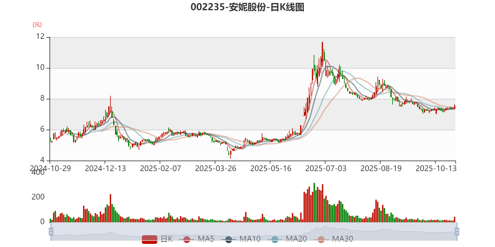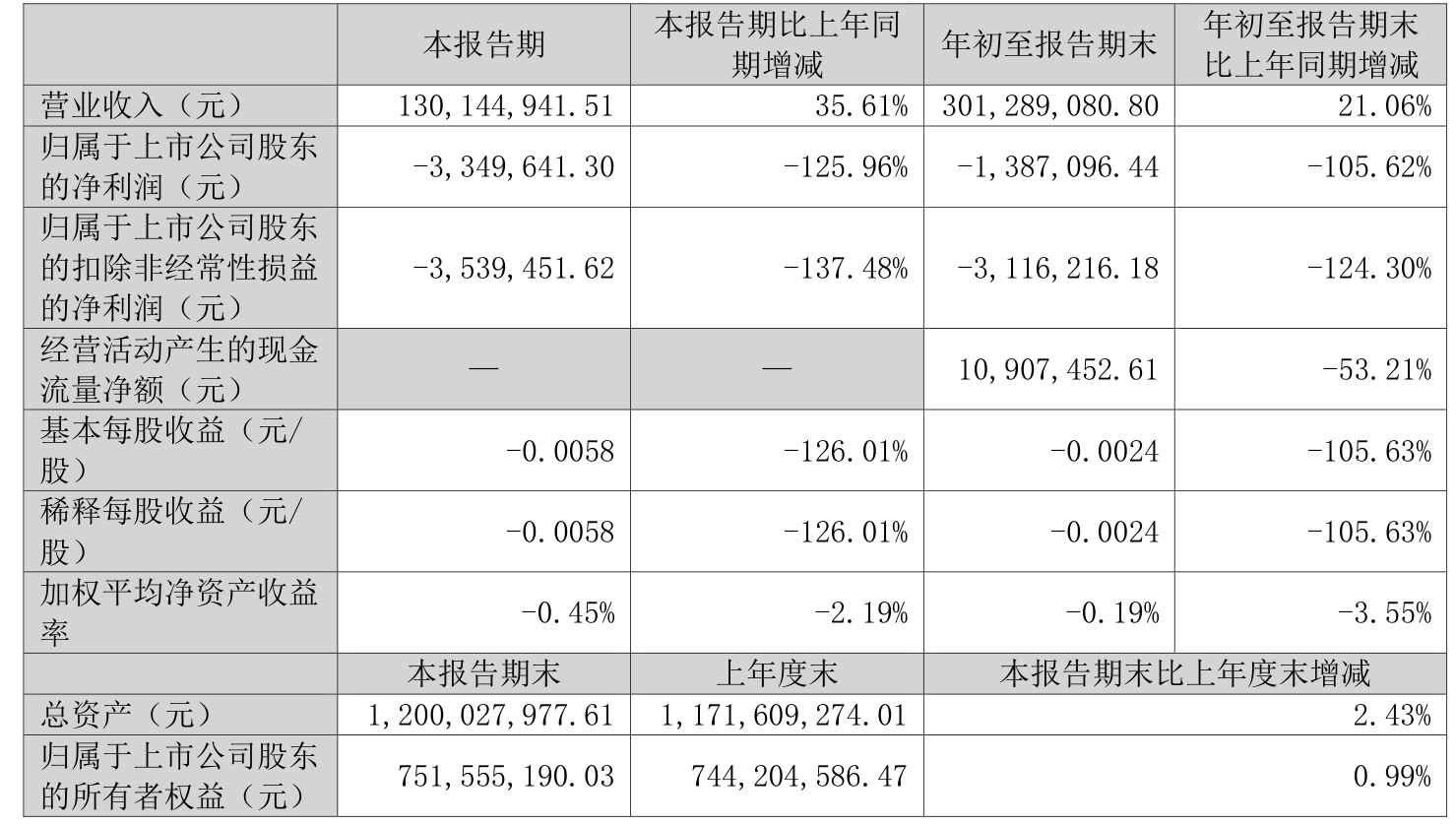 中证智能财讯安妮股份(002235)10月29日披露2025年第三季度报告。前三季度公司实现营业总收入3.01亿元,同比增长21.06%;归母净利润亏损138.71万元,上年同期盈利2468.57万元;扣非净利润亏损311.62万元,上年同期盈利1282.55万元;经营活动产生的现金流量净额为1090.75万元,同比下降53.21%;报告期内,安妮股份基本每股收益为-0.0024元,加权平均净资产收益率为-0.19%。