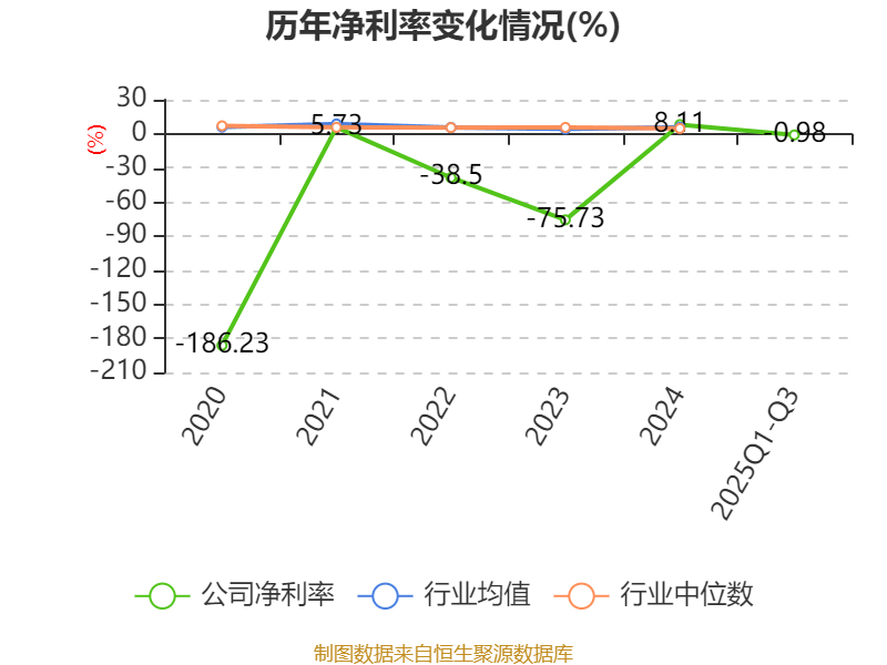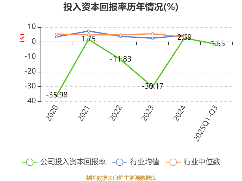 盈利能力方面, 2025年前三季度公司加权平均净资产收益率为-0.19%,同比下降3.55个百分点。公司2025年前三季度投入资本回报率为-1.55%,较上年同期下降4.09个百分点。