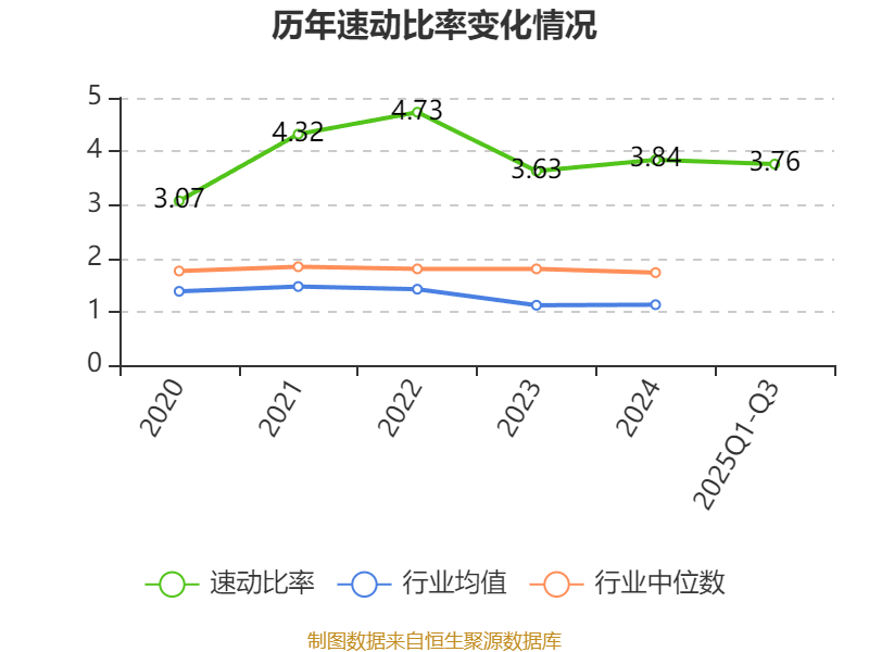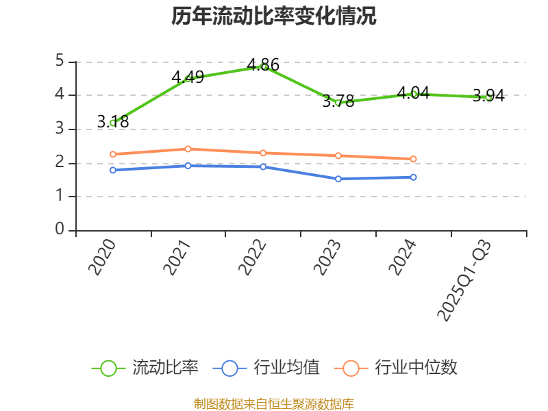 2025年前三季度,公司流动比率为3.94,速动比率为3.76。