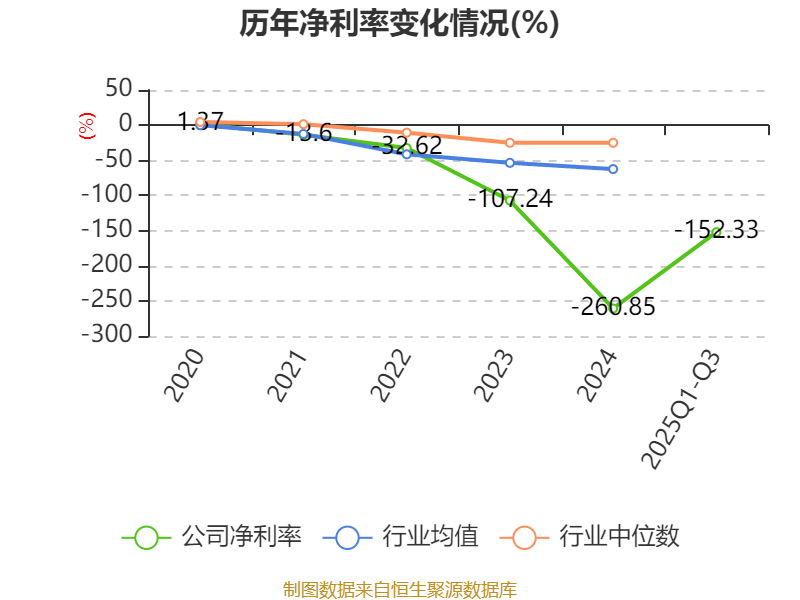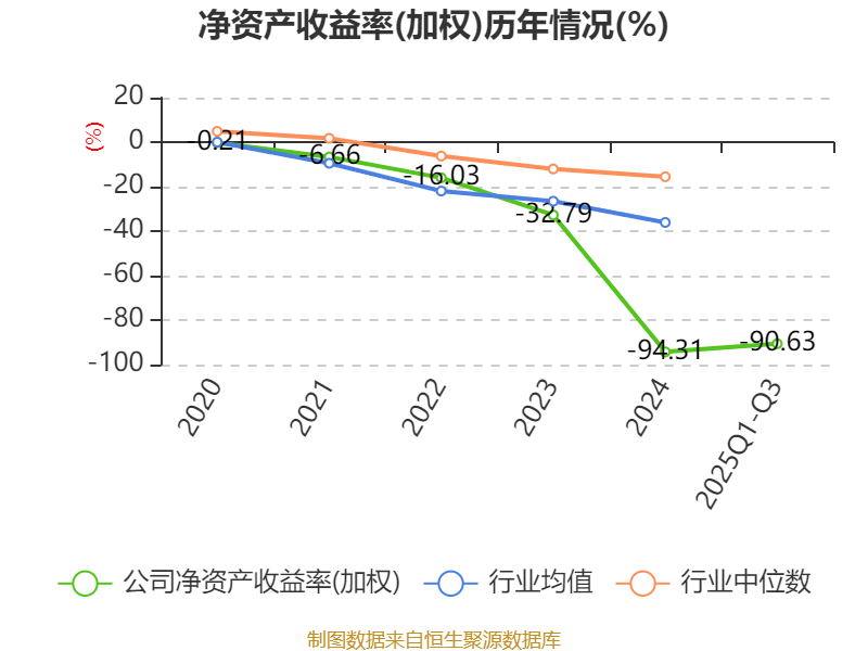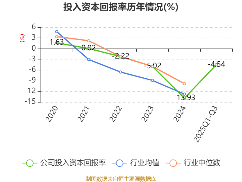 盈利能力方面, 2025年前三季度公司加权平均净资产收益率为-90.63%,同比下降72.66个百分点。公司2025年前三季度投入资本回报率为-4.54%,较上年同期下降2.67个百分点。