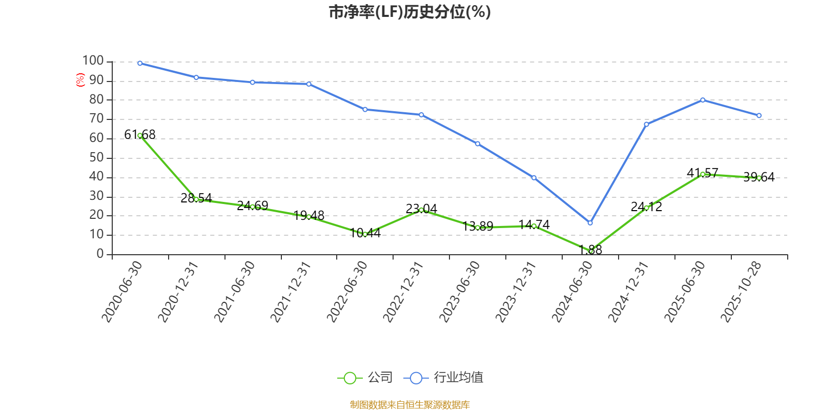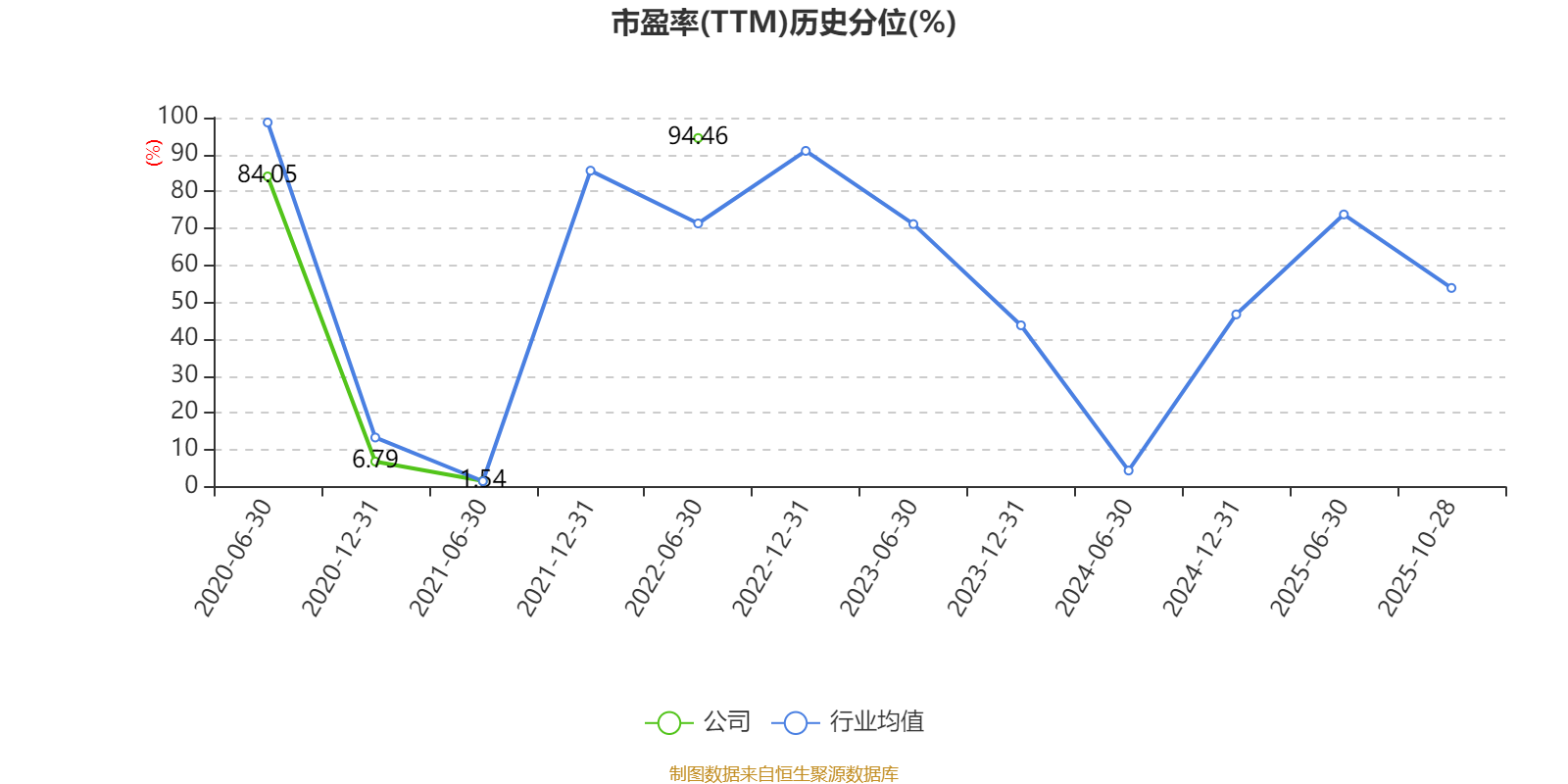 市盈率、市净率为负时,不显示当期分位数,会导致折线图中断。