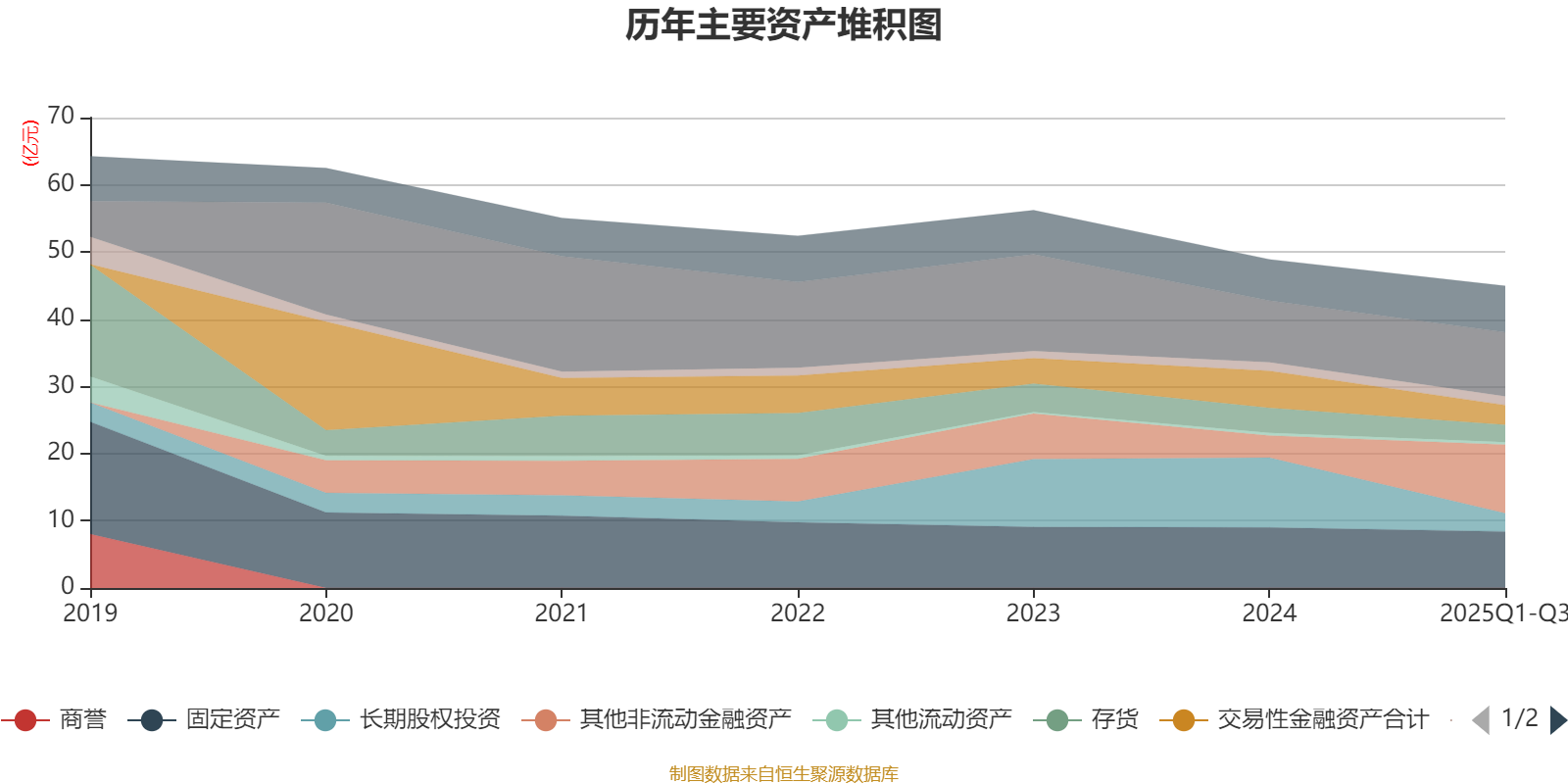 资产重大变化方面,截至2025年三季度末,公司其他非流动金融资产较上年末增加210.46%,占公司总资产比重上升15.99个百分点;长期股权投资较上年末减少73.79%,占公司总资产比重下降15.21个百分点;交易性金融资产合计较上年末减少47.02%,占公司总资产比重下降4.78个百分点;货币资金较上年末增加4.07%,占公司总资产比重上升2.48个百分点。