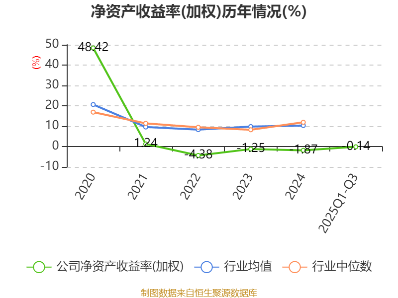 盈利能力方面, 2025年前三季度公司加权平均净资产收益率为-0.14%,同比上升1.41个百分点。公司2025年前三季度投入资本回报率为-0.07%,较上年同期上升1.61个百分点。