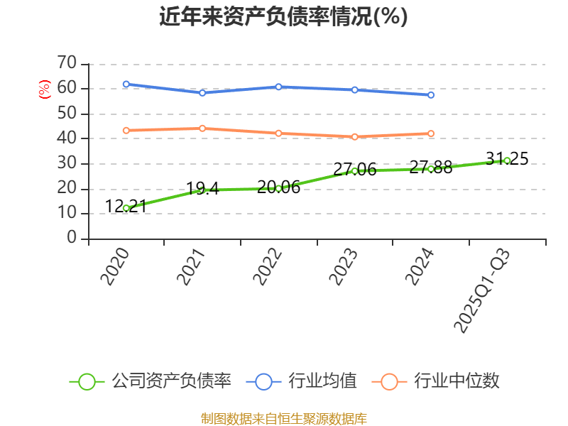 负债重大变化方面,截至2025年三季度末,公司长期借款较上年末增加98.05%,占公司总资产比重上升4.18个百分点;一年内到期的非流动负债较上年末减少32.37%,占公司总资产比重下降2.7个百分点;短期借款较上年末增加113.38%,占公司总资产比重上升2.61个百分点;应付票据及应付账款较上年末减少37.12%,占公司总资产比重下降1.29个百分点。