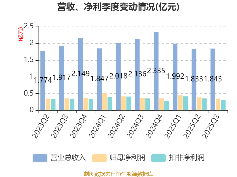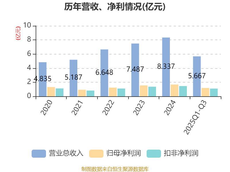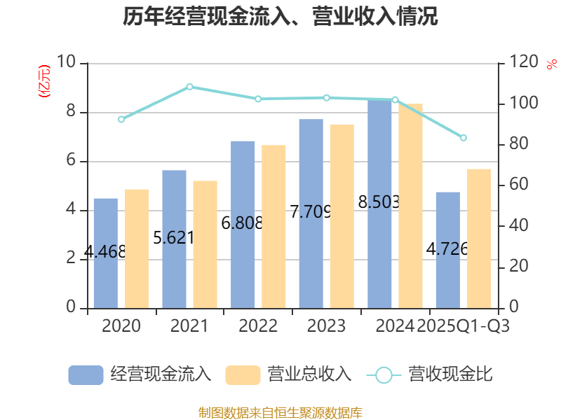 2025年前三季度,公司流动比率为3.52,速动比率为3.46。