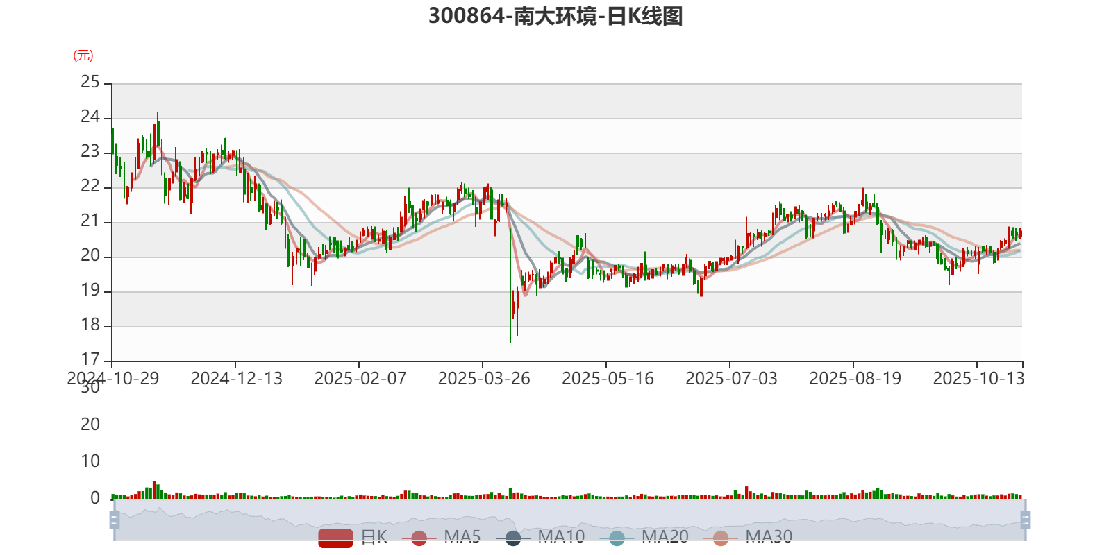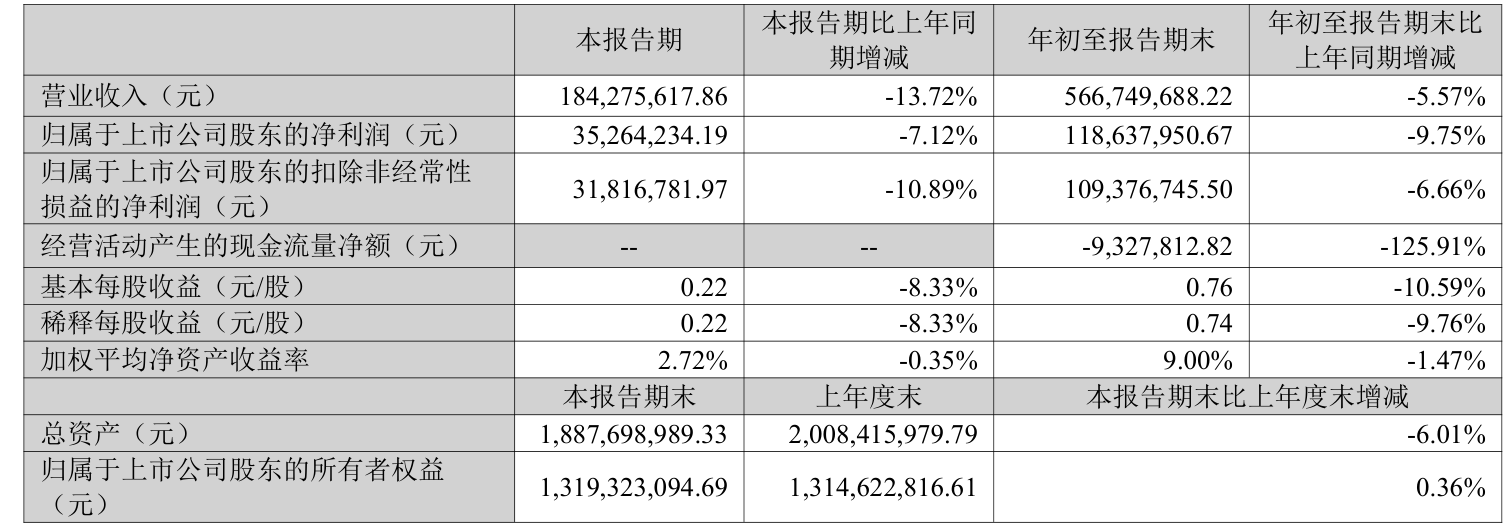 中证智能财讯南大环境(300864)10月29日披露2025年第三季度报告。前三季度公司实现营业总收入5.67亿元,同比下降5.57%;归母净利润1.19亿元,同比下降9.75%;扣非净利润1.09亿元,同比下降6.66%;经营活动产生的现金流量净额为-932.78万元,上年同期为3599.93万元;报告期内,南大环境基本每股收益为0.76元,加权平均净资产收益率为9.00%。