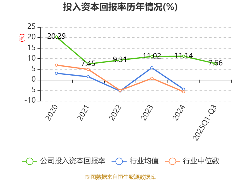 盈利能力方面, 2025年前三季度公司加权平均净资产收益率为9%,同比下降1.47个百分点。公司2025年前三季度投入资本回报率为7.66%,较上年同期下降1.62个百分点。