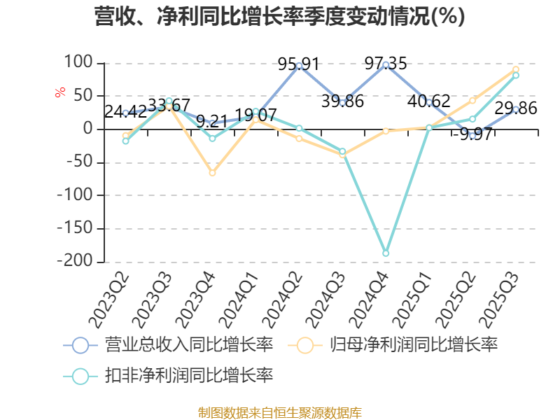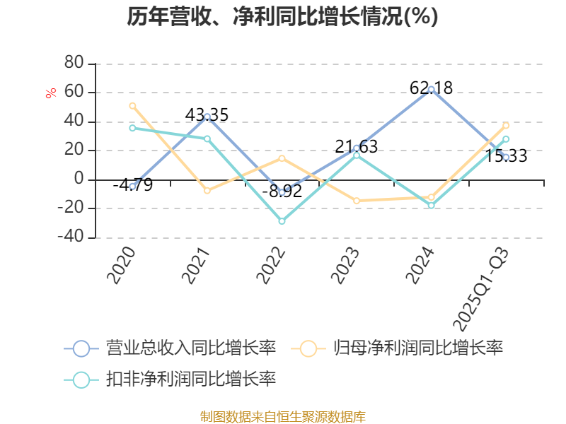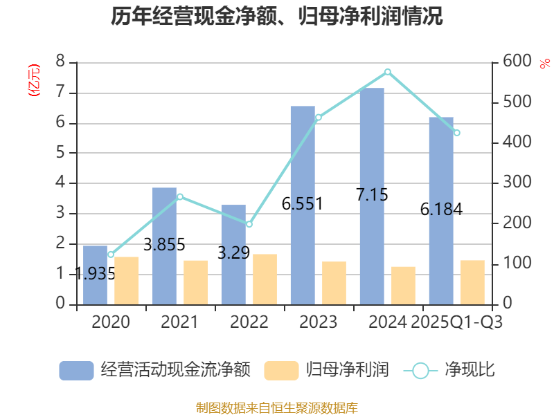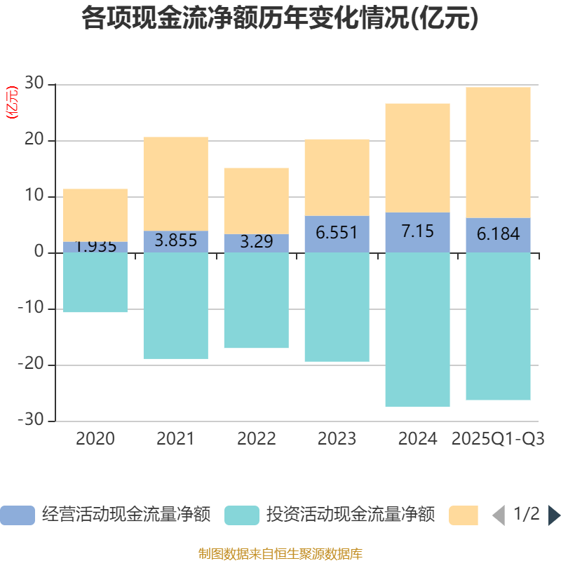 2025年前三季度,公司经营活动现金流净额为6.18亿元,同比增长31.88%;筹资活动现金流净额23.27亿元,同比增加4.74亿元;投资活动现金流净额-26.31亿元,上年同期为-21.41亿元。