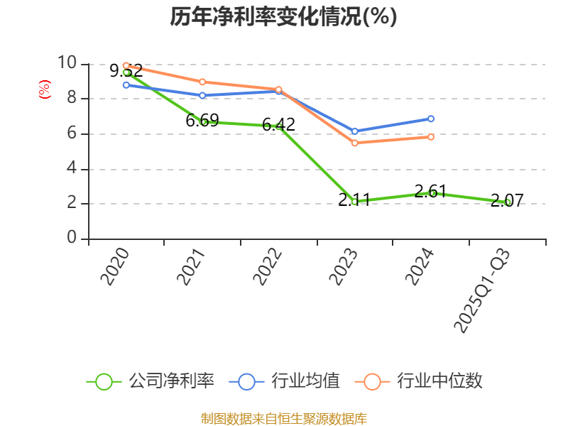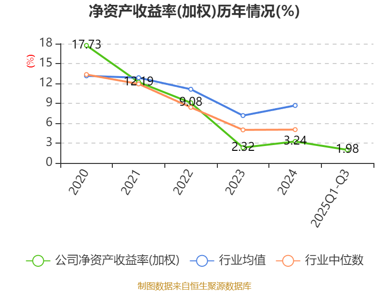 盈利能力方面, 2025年前三季度公司加权平均净资产收益率为1.98%,同比下降0.68个百分点。公司2025年前三季度投入资本回报率为0.73%,较上年同期下降0.86个百分点。
