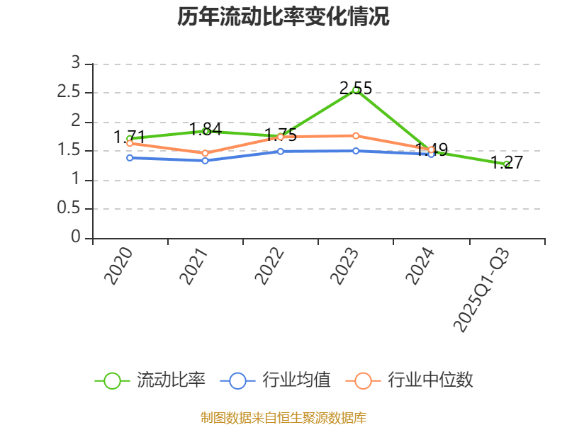 2025年前三季度,公司流动比率为1.27,速动比率为0.94。