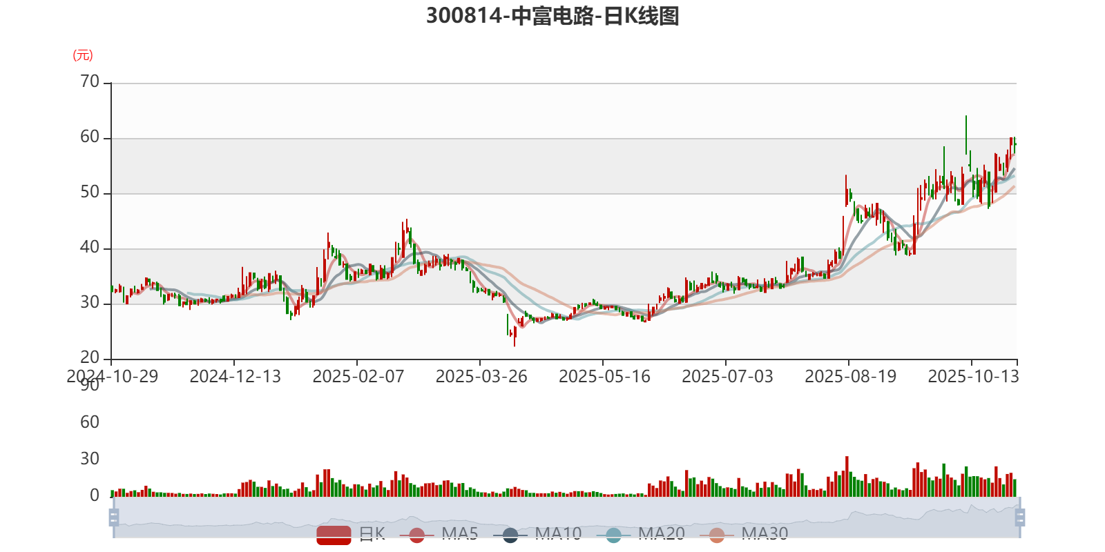 以10月28日收盘价计算,中富电路目前市盈率(TTM)约为323.82倍,市净率(LF)约6.85倍,市销率(TTM)约6.38倍。