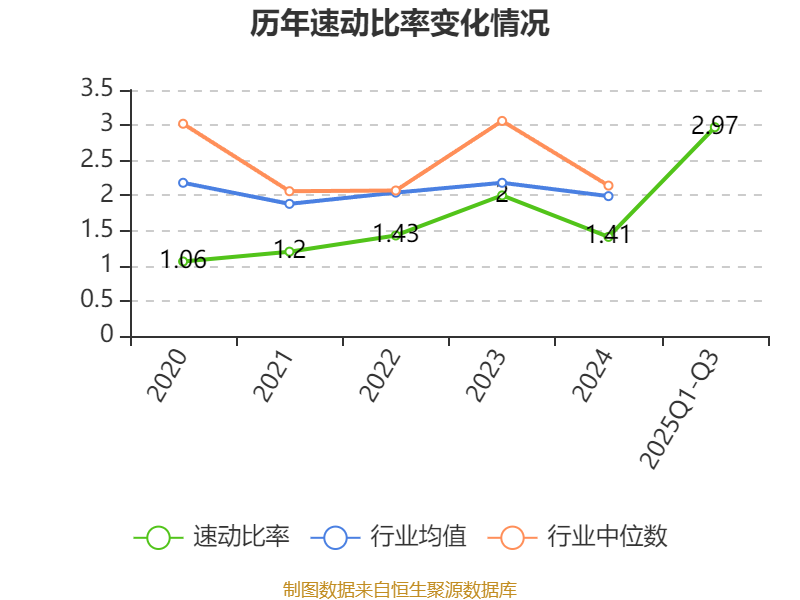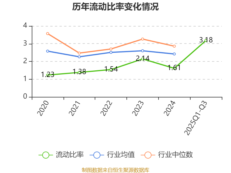 2025年前三季度,公司流动比率为3.18,速动比率为2.97。