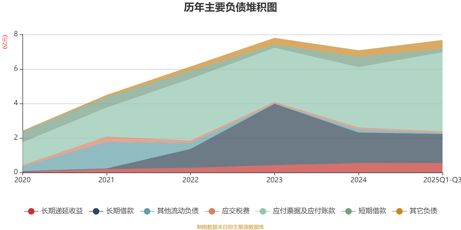 负债重大变化方面,截至2025年三季度末,公司长期借款较上年末减少5%,占公司总资产比重下降4.86个百分点;应付票据及应付账款较上年末增加31.49%,占公司总资产比重下降4.38个百分点;短期借款较上年末减少66.46%,占公司总资产比重下降3.2个百分点;长期递延收益较上年末增加0.95%,占公司总资产比重下降1.37个百分点。