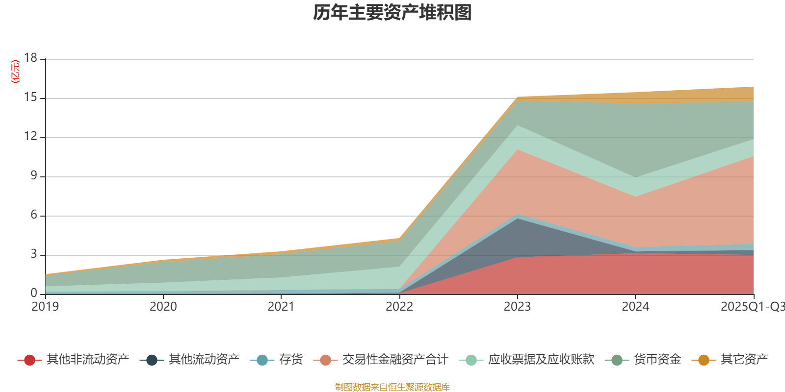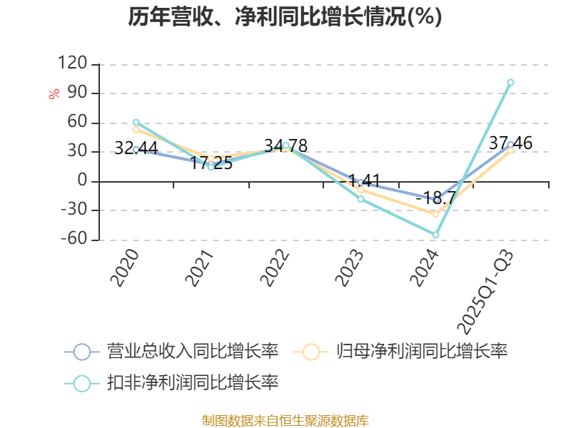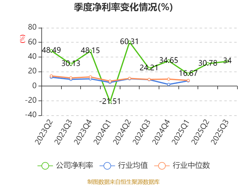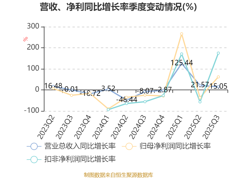 资产重大变化方面,截至2025年三季度末,公司货币资金较上年末减少50.19%,占公司总资产比重下降18.96个百分点;交易性金融资产合计较上年末增加74.87%,占公司总资产比重上升17.5个百分点;在建工程合计较上年末增加5717.65%,占公司总资产比重上升1.47个百分点;应收票据及应收账款较上年末减少12.84%,占公司总资产比重下降1.46个百分点。