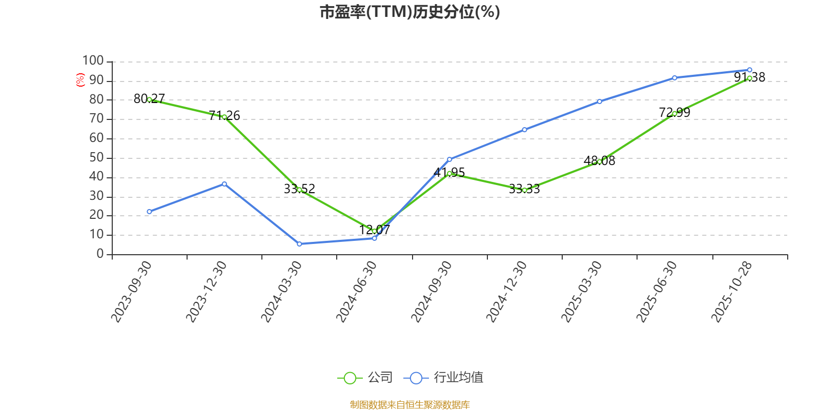 市盈率、市净率为负时,不显示当期分位数,会导致折线图中断。
