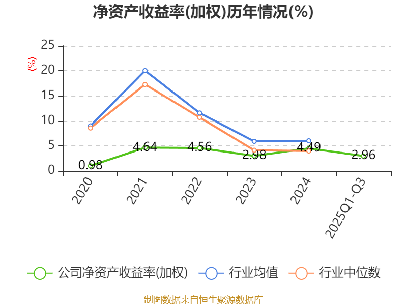 盈利能力方面, 2025年前三季度公司加权平均净资产收益率为2.96%,同比下降0.39个百分点。公司2025年前三季度投入资本回报率为4.84%,较上年同期下降0.32个百分点。
