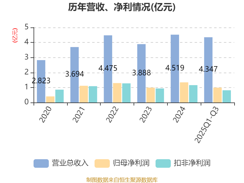 中证智能财讯昊帆生物(301393)10月29日披露2025年第三季度报告。前三季度公司实现营业总收入4.35亿元,同比增长32.47%;归母净利润9923.83万元,同比增长3.01%;扣非净利润8127.2万元,同比下降2.79%;经营活动产生的现金流量净额为4772.31万元,同比下降55.23%;报告期内,昊帆生物基本每股收益为0.93元,加权平均净资产收益率为4.30%。公司2025年前三季度分配预案为:拟向全体股东每10股派现1.35元(含税)。