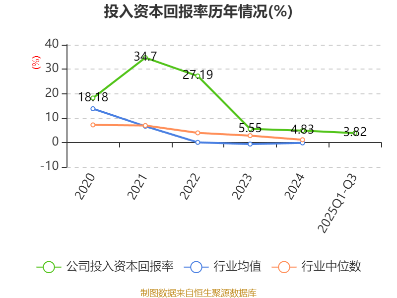 盈利能力方面, 2025年前三季度公司加权平均净资产收益率为4.3%,同比下降0.02个百分点。公司2025年前三季度投入资本回报率为3.82%,较上年同期上升0.59个百分点。