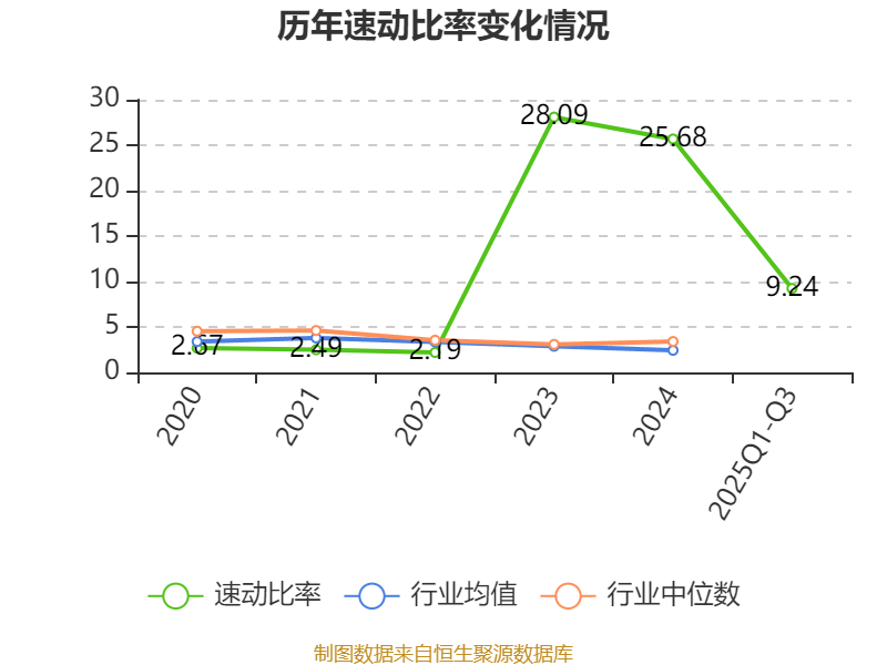 2025年前三季度,公司流动比率为10.09,速动比率为9.24。