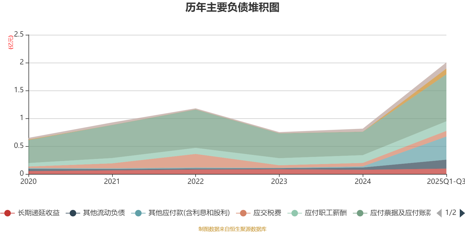 负债重大变化方面,截至2025年三季度末,公司其他应付款(含利息和股利)较上年末增加1956.73%,占公司总资产比重上升1.55个百分点;应付票据及应付账款较上年末增加101.09%,占公司总资产比重上升1.52个百分点;其他流动负债较上年末增加303.86%,占公司总资产比重上升0.46个百分点;短期借款占公司总资产的0.4%,上年末为0。