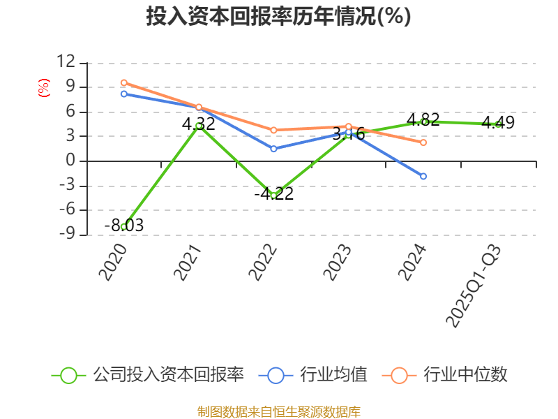 盈利能力方面, 2025年前三季度公司加权平均净资产收益率为6.41%,同比上升1.81个百分点。公司2025年前三季度投入资本回报率为4.49%,较上年同期上升0.84个百分点。