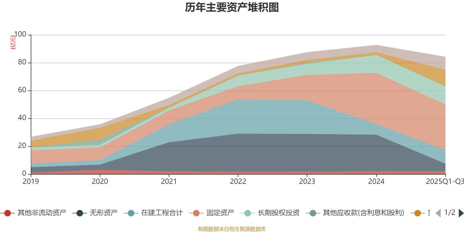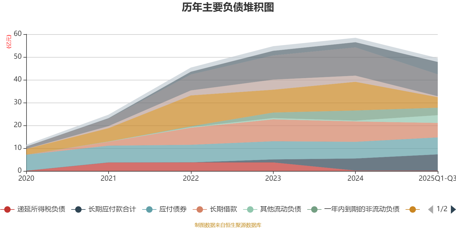负债重大变化方面,截至2025年三季度末,公司其他应付款(含利息和股利)较上年末减少63.28%,占公司总资产比重下降8.06个百分点;短期借款较上年末增加139.03%,占公司总资产比重上升3.97个百分点;其他流动负债较上年末增加855.27%,占公司总资产比重上升3.67个百分点;长期应付款合计较上年末增加35.09%,占公司总资产比重上升2.78个百分点。