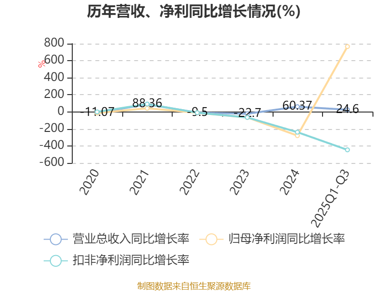 资产重大变化方面,截至2025年三季度末,公司无形资产较上年末减少79%,占公司总资产比重下降21.71个百分点;货币资金较上年末增加583.88%,占公司总资产比重上升12.28个百分点;应收票据及应收账款较上年末增加3637.41%,占公司总资产比重上升4.81个百分点;在建工程合计较上年末增加31.32%,占公司总资产比重上升3.61个百分点。