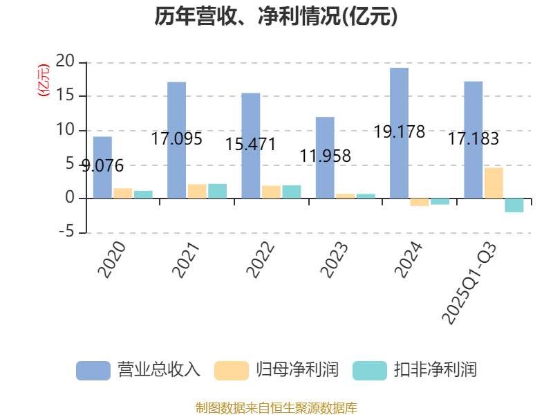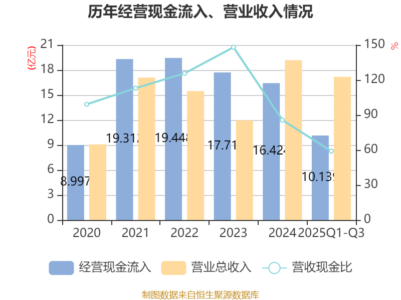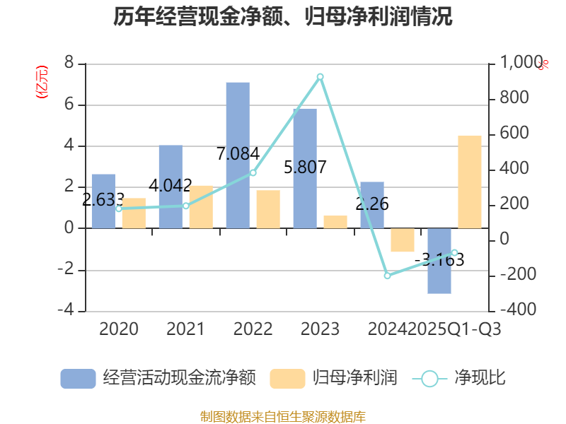 2025年前三季度,公司经营活动现金流净额为-3.16亿元,同比减少5.14亿元;筹资活动现金流净额-2.1亿元,同比减少1.51亿元;投资活动现金流净额14.86亿元,上年同期为-1.48亿元。