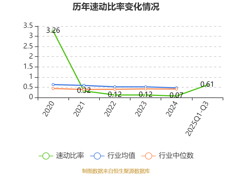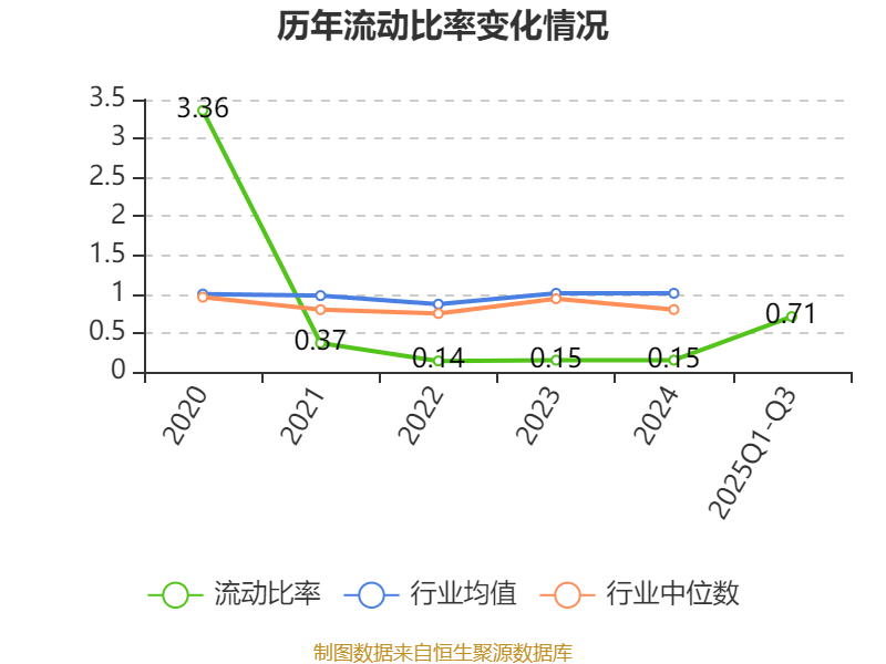 2025年前三季度,公司流动比率为0.71,速动比率为0.61。
