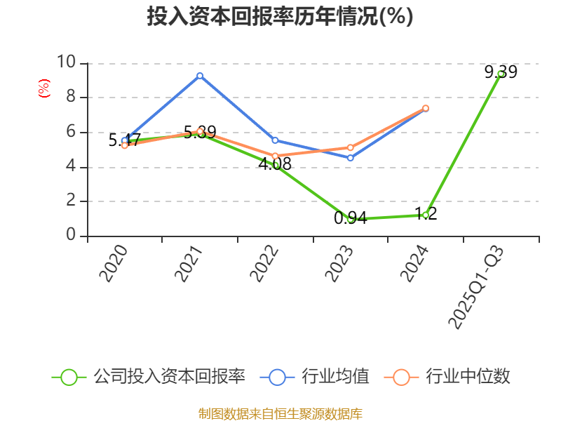 盈利能力方面, 2025年前三季度公司加权平均净资产收益率为13.97%,同比上升12.25个百分点。公司2025年前三季度投入资本回报率为9.39%,较上年同期上升7.86个百分点。