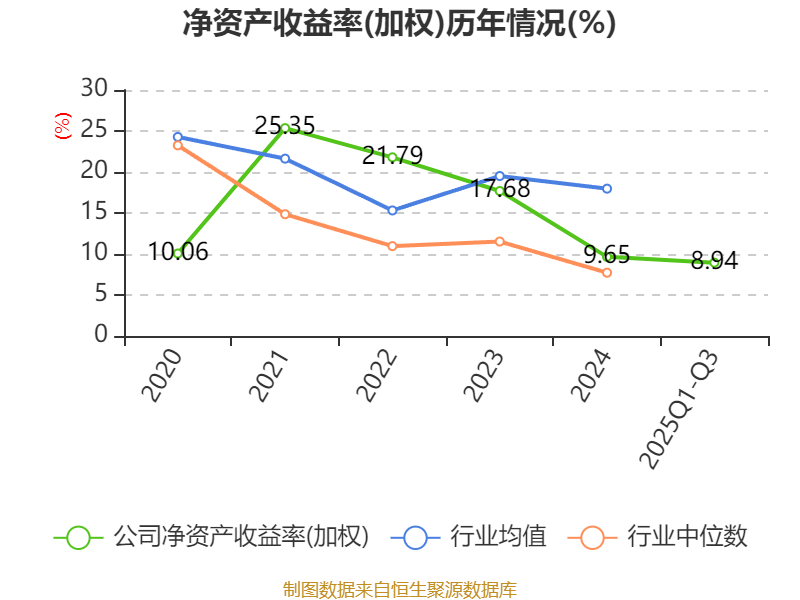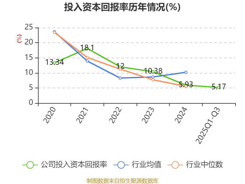 盈利能力方面, 2025年前三季度公司加权平均净资产收益率为8.94%,同比上升0.39个百分点。公司2025年前三季度投入资本回报率为5.17%,较上年同期下降0.54个百分点。