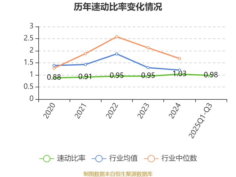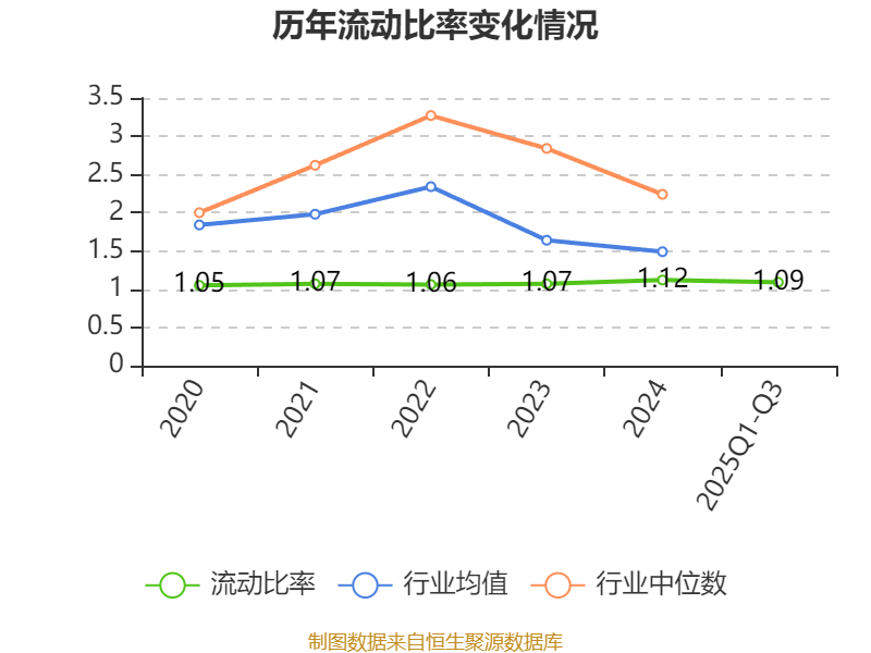 2025年前三季度,公司流动比率为1.09,速动比率为0.98。