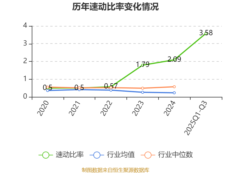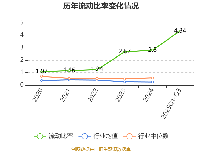 2025年前三季度,公司流动比率为4.34,速动比率为3.58。