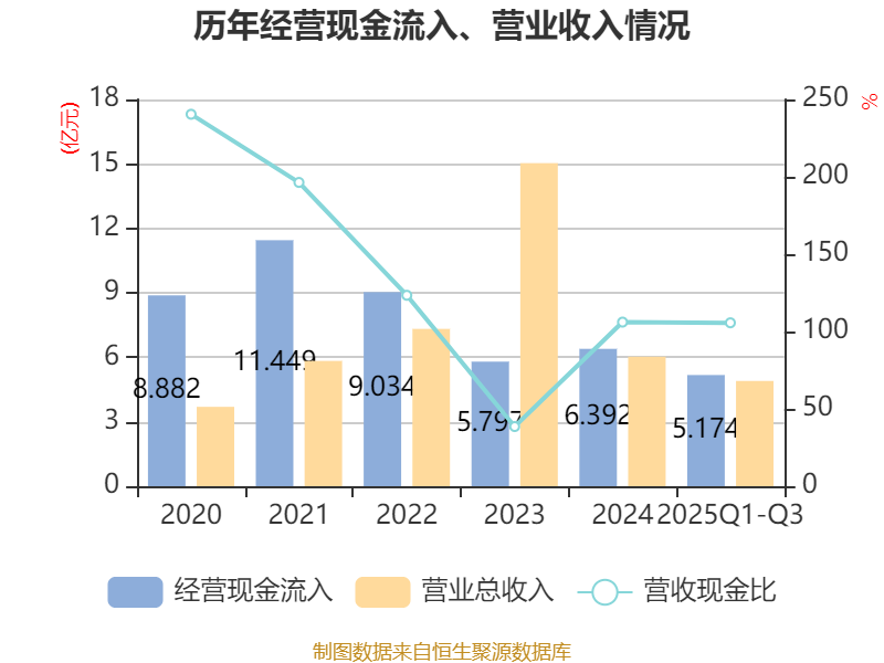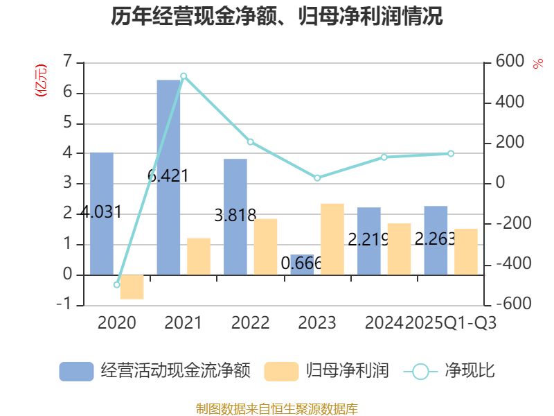 2025年前三季度,公司经营活动现金流净额为2.26亿元,同比增长63.27%;筹资活动现金流净额-2584.46万元,同比减少1.49亿元;投资活动现金流净额-7702.48万元,上年同期为-2.54亿元。