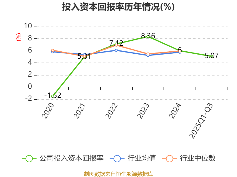 盈利能力方面, 2025年前三季度公司加权平均净资产收益率为5.86%,同比上升1.23个百分点。公司2025年前三季度投入资本回报率为5.07%,较上年同期上升1.09个百分点。
