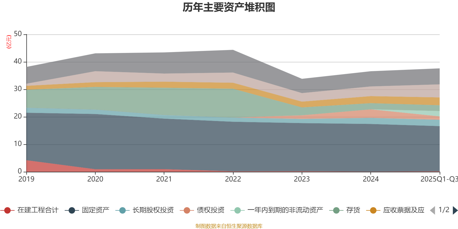 资产重大变化方面,截至2025年三季度末,公司债权投资较上年末减少60.28%,占公司总资产比重下降5.21个百分点;一年内到期的非流动资产占公司总资产的5.15%,上年末为0;固定资产较上年末减少5.29%,占公司总资产比重下降3.77个百分点;货币资金较上年末增加34.96%,占公司总资产比重上升3.01个百分点。