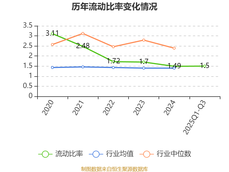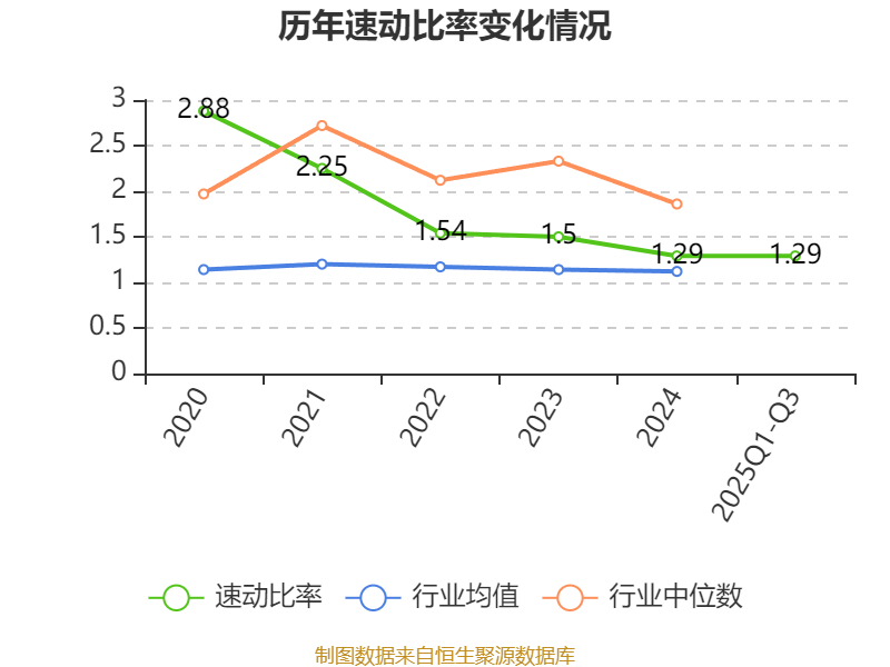 2025年前三季度,公司流动比率为1.5,速动比率为1.29。