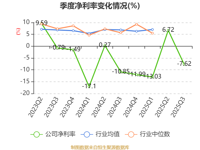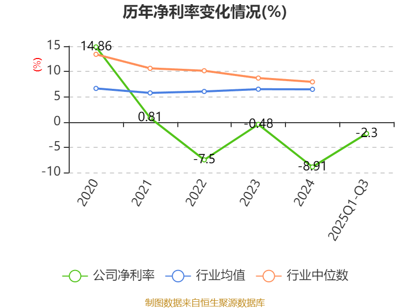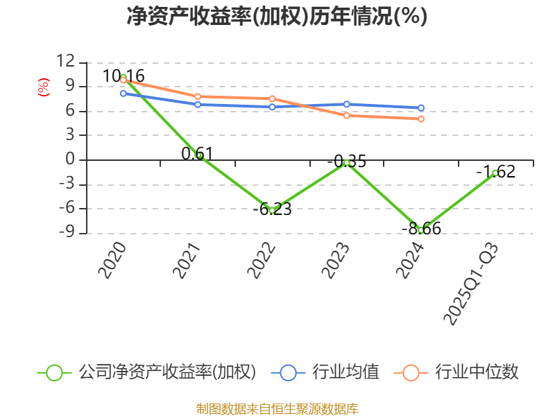 盈利能力方面, 2025年前三季度公司加权平均净资产收益率为-1.62%,同比上升3.17个百分点。公司2025年前三季度投入资本回报率为-0.14%,较上年同期上升3.35个百分点。