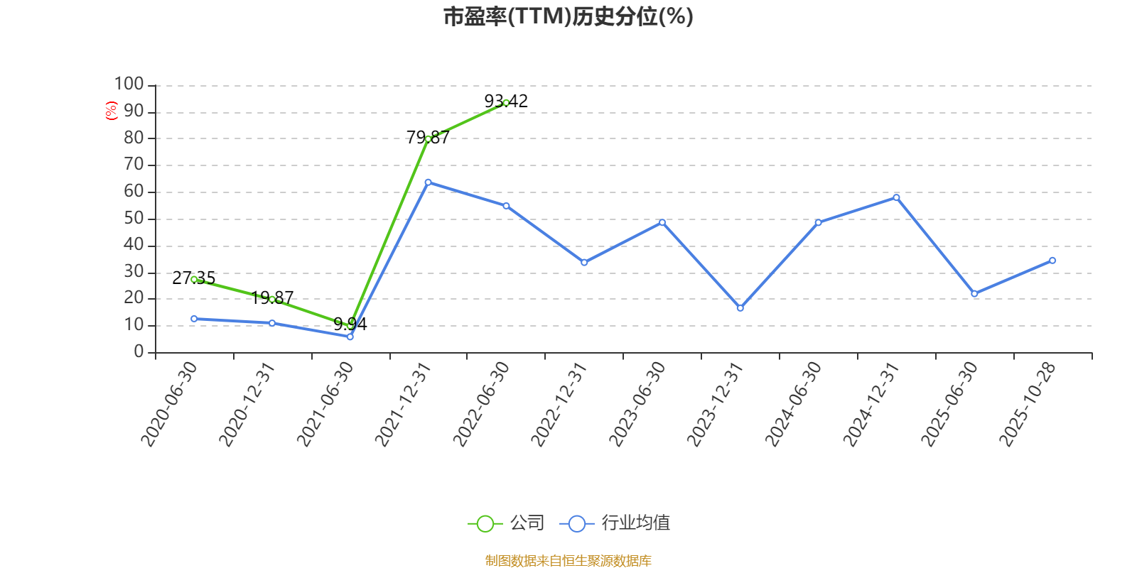 市盈率、市净率为负时,不显示当期分位数,会导致折线图中断。