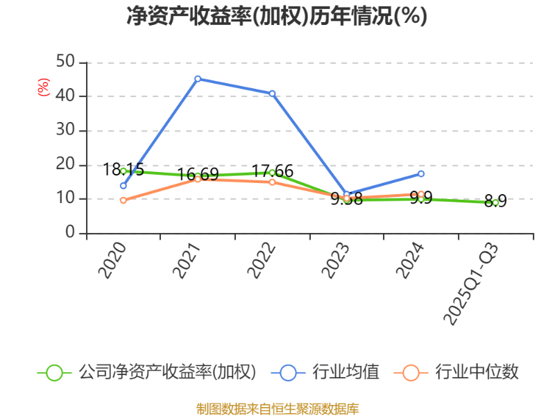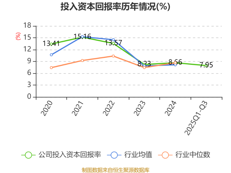 盈利能力方面, 2025年前三季度公司加权平均净资产收益率为8.9%,同比上升1.61个百分点。公司2025年前三季度投入资本回报率为7.95%,较上年同期上升1.63个百分点。