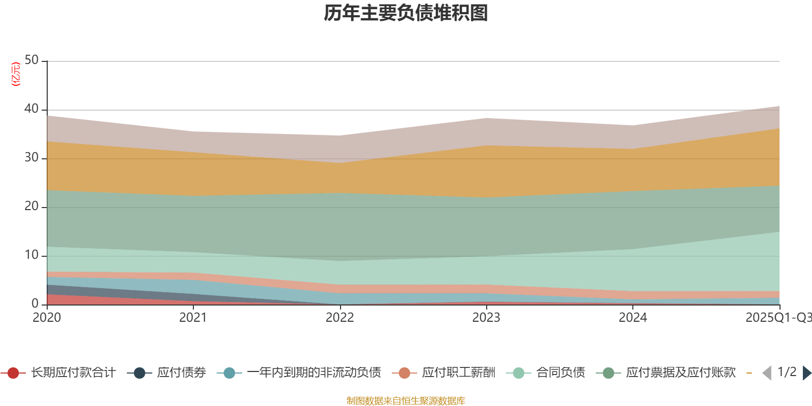 负债重大变化方面,截至2025年三季度末,公司应付票据及应付账款较上年末减少20.67%,占公司总资产比重下降3.68个百分点;合同负债较上年末增加40.89%,占公司总资产比重上升2.93个百分点;短期借款较上年末增加36.3%,占公司总资产比重上升2.52个百分点;长期借款较上年末减少100%,占公司总资产比重下降1.14个百分点。